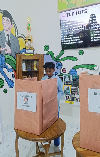 Pemilos dilaksanakan hari Selasa, 02 September 2025. Dimulai pukul 07.30 s.d. 11.40 WIB. Diawali dengan sumpah janji KPPS. Dilanjutkan pelaksanaan pemilos, mulai dari kelas VII dimulai pukul 07.30 hingga 09.20 WIB, selanjutnya kelas VIII dimulai pukul 09.40 hingga 10.30 WIB, dan yang terakhir kelas IX dari pukul 10.30 hingga 11.40 WIB. Setelah itu, istirahat sholat dan makan dilanjutkan lagi pukul 13.00 WIB dengan agenda perhitungan suara yang dihadiri oleh saksi kandidat nomor 1 dan kandidat nomor 2. Hasil rekapitulasi penghitungan suara diperoleh hasil jumlah suara sah sebanyak 113 suara dan suara tidak sah terdapat 6 suara.
