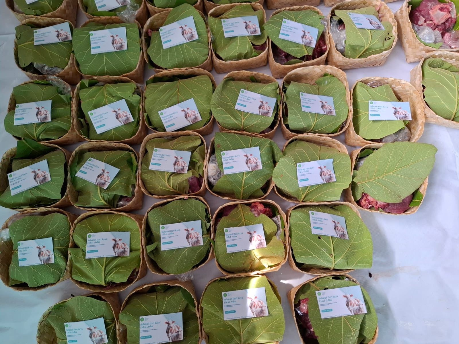 Hewan kurban yang disembelih berupa 1 ekor sapi, disalurkan untuk warga sekitar sekolah secara door to door ke rumah warga, sebagai wujud syukur dan berbagi kepada sesama. Daging yang dibagikan dibungkus menggunakan besek yang dialasi dengan daun jati. Pemakaian besek dan daun jati merupakan upaya sekolah untuk membantu mengurangi sampah plastik sehingga beralih memakai bahan yang ramah lingkungan, lebih mudah untuk diurai.